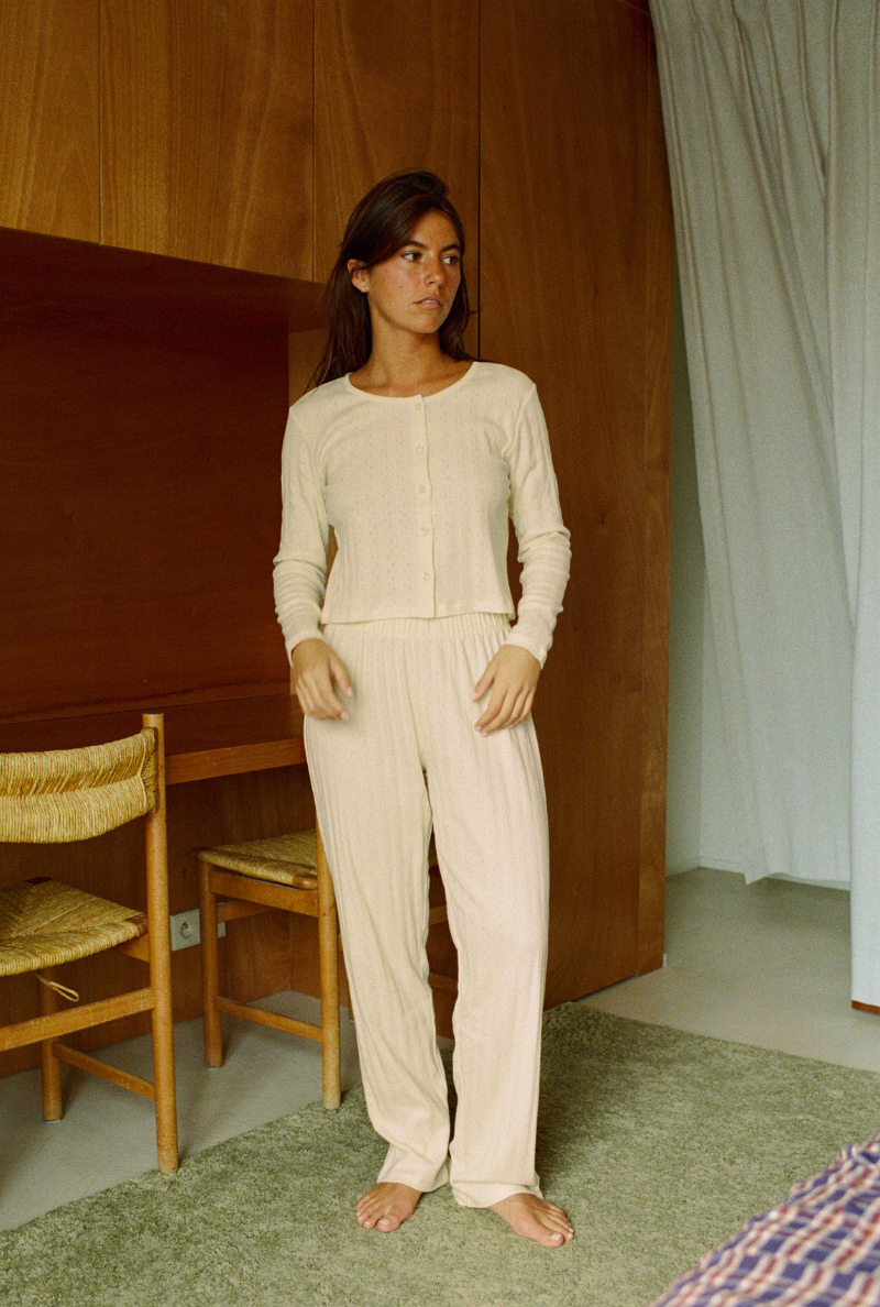 Côté vestiaire, nous vous conseillons le cardigan Suzanne crème tout doux, le pyjama Haydée couleur terracotta avec son style kimono, ou encore la cagoule rayée rose, parfaite pour vous tenir chaud. Pour un look plus habillé, la chemise Solène rayée vous donnera un style unique.