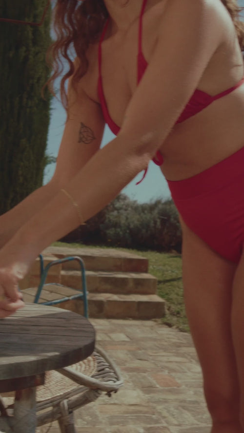 La culotte Koudou est doublée dans une couleur beige, ce qui la rend à la fois toute douce et très opaque même mouillée. Sa couleur rouge cerise sublime toutes les carnations.
