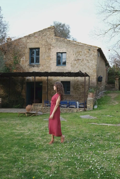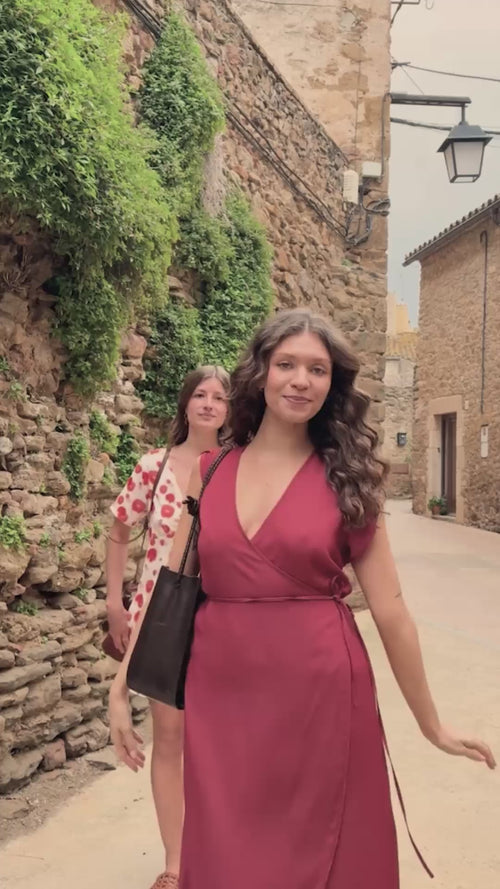 The Ines midi dress is made of recycled polyester, it is the perfect ally to enjoy your summer in the cool. With its wrap cut that ties at the waist, its draped play at the shoulders, and its subtle neckline, it enhances the silhouette in all lightness.