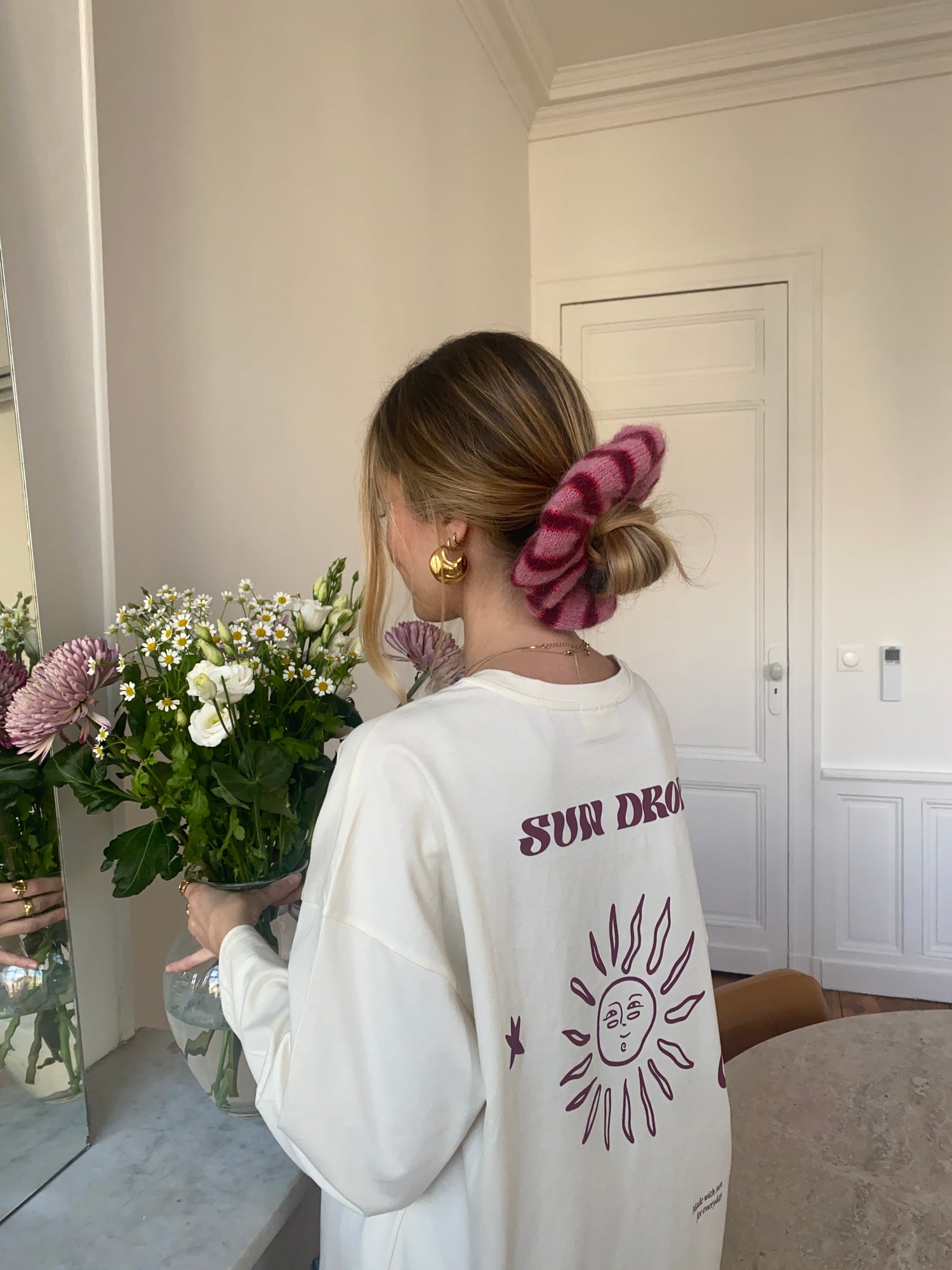 But I’d say I really fell in love with the scrunchies: I just think they’re perfect. I’ve often tried making them, and these ones meet, in my opinion, all the criteria for the ideal scrunchie: a wide size but not too big, just enough to show off, and vibrant, lively colors. It’s a perfect match. I can imagine them with many different styles, they're a must-have accessory!