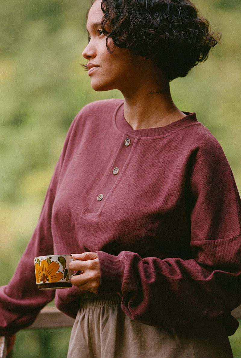 The essential soft oversized sweatshirt in your wardrobe. We love its Tunisian collar, perfect for adjusting the opening according to your desires and the weather.