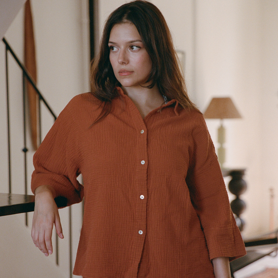 When it comes to Mimosa, it has to be cotton gauze! To ensure a smooth transition into fall, the cotton gauze is now available in a new warm brick color.