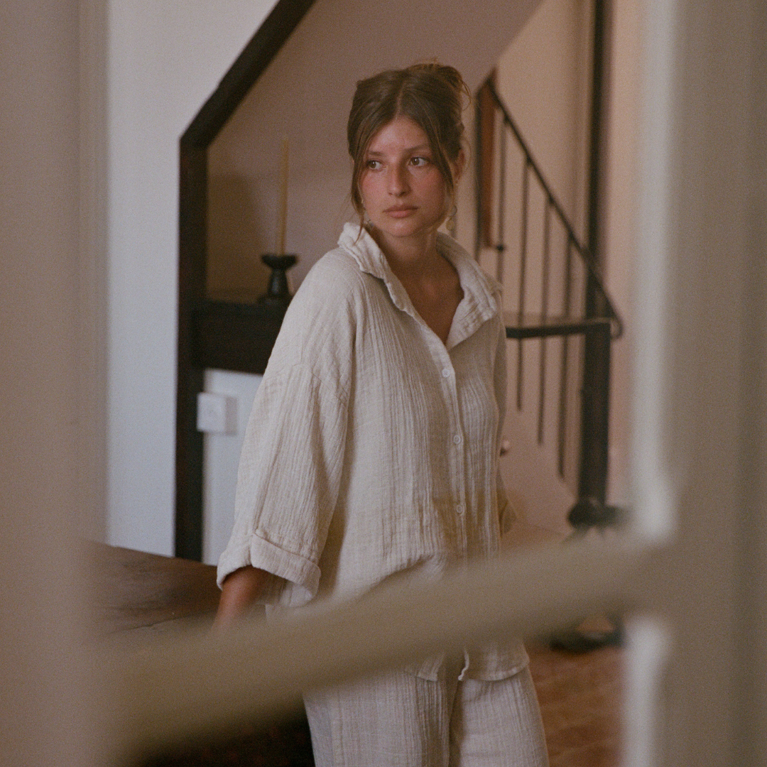 A true favorite at Nénés, the Mimosa pyjama are making a big comeback this season! It comes in a brand new ecru version with a subtle checkered pattern. As comfortable and soft as the previous ones.