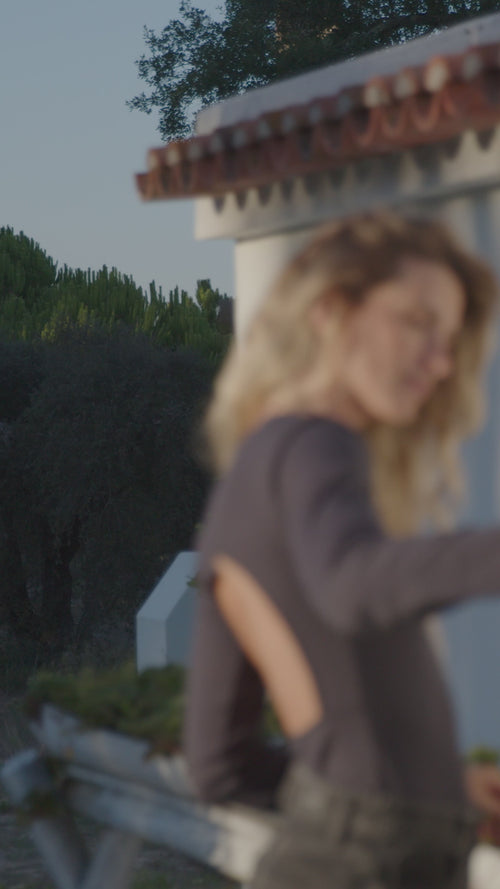 The Alya body is a long-sleeved bodysuit in openwork knit made from organic cotton. With a round neck and a large opening in the back, this body is very feminine!
