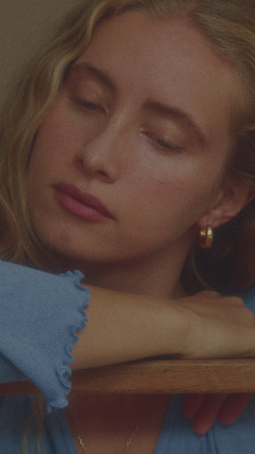 The Kristin top is a wrap-over top that ties delicately at the waist, allowing you to adjust the fastening to suit your desires and your bust.