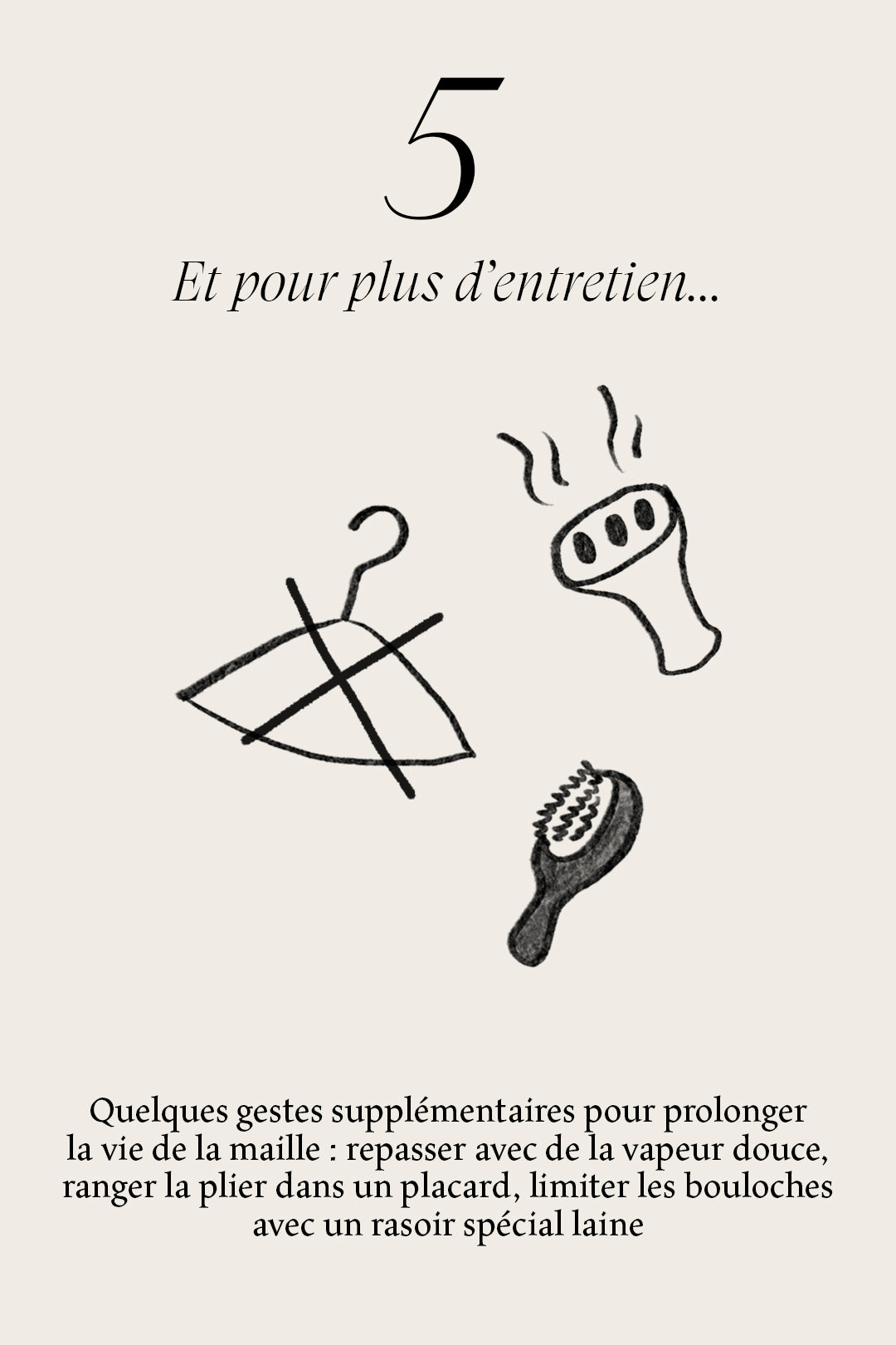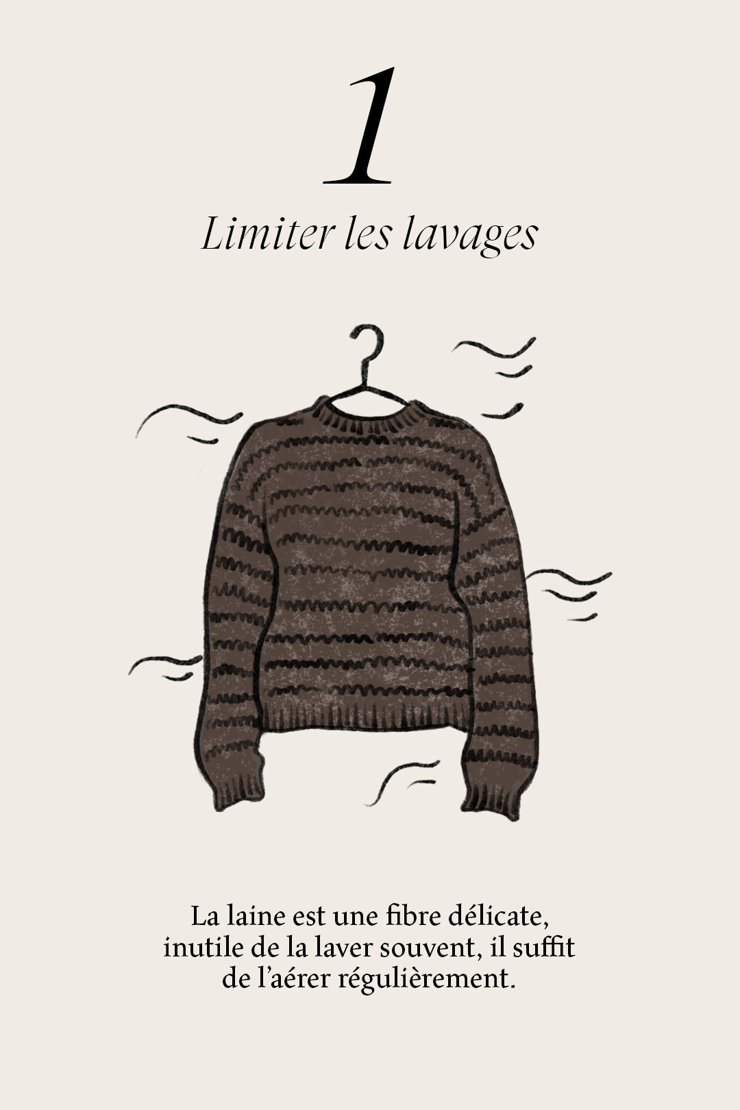 Et pour limiter les bouloches, lavez vos pièces à l’envers et évitez les frottement. La laine étant une fibre naturelle, les bouloches restent inévitables mais n'hésite pas à les retirer délicatement à l’aide d’une brosse douce ou d’un rasoir spécial laine.