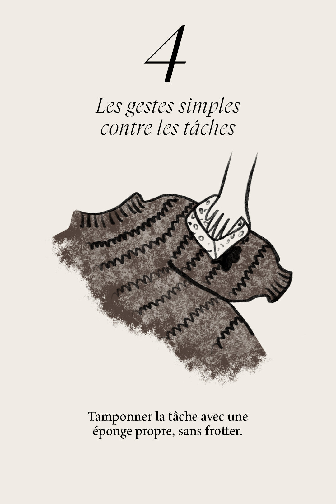 Pour préserver les fibres : ne frottez pas mais tamponnez.