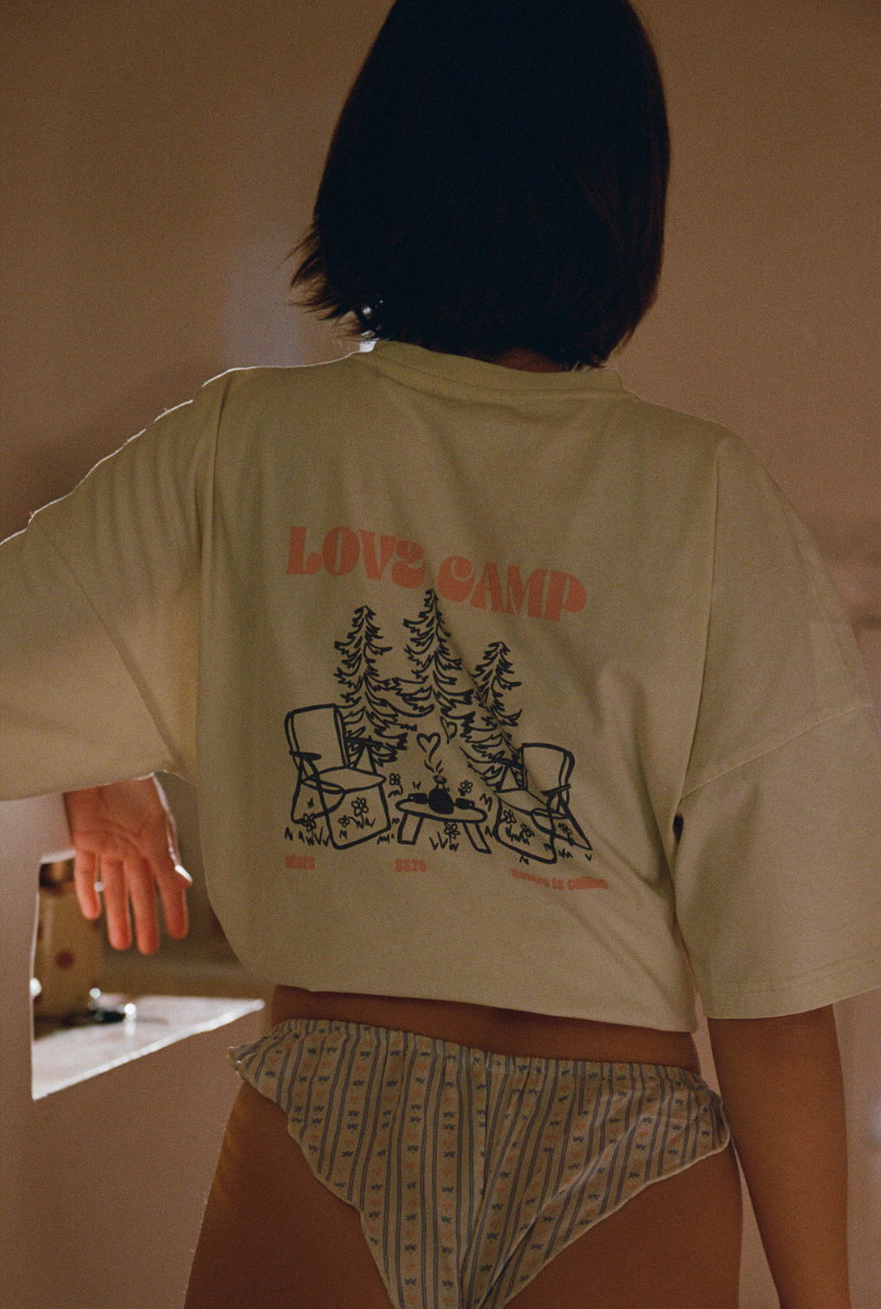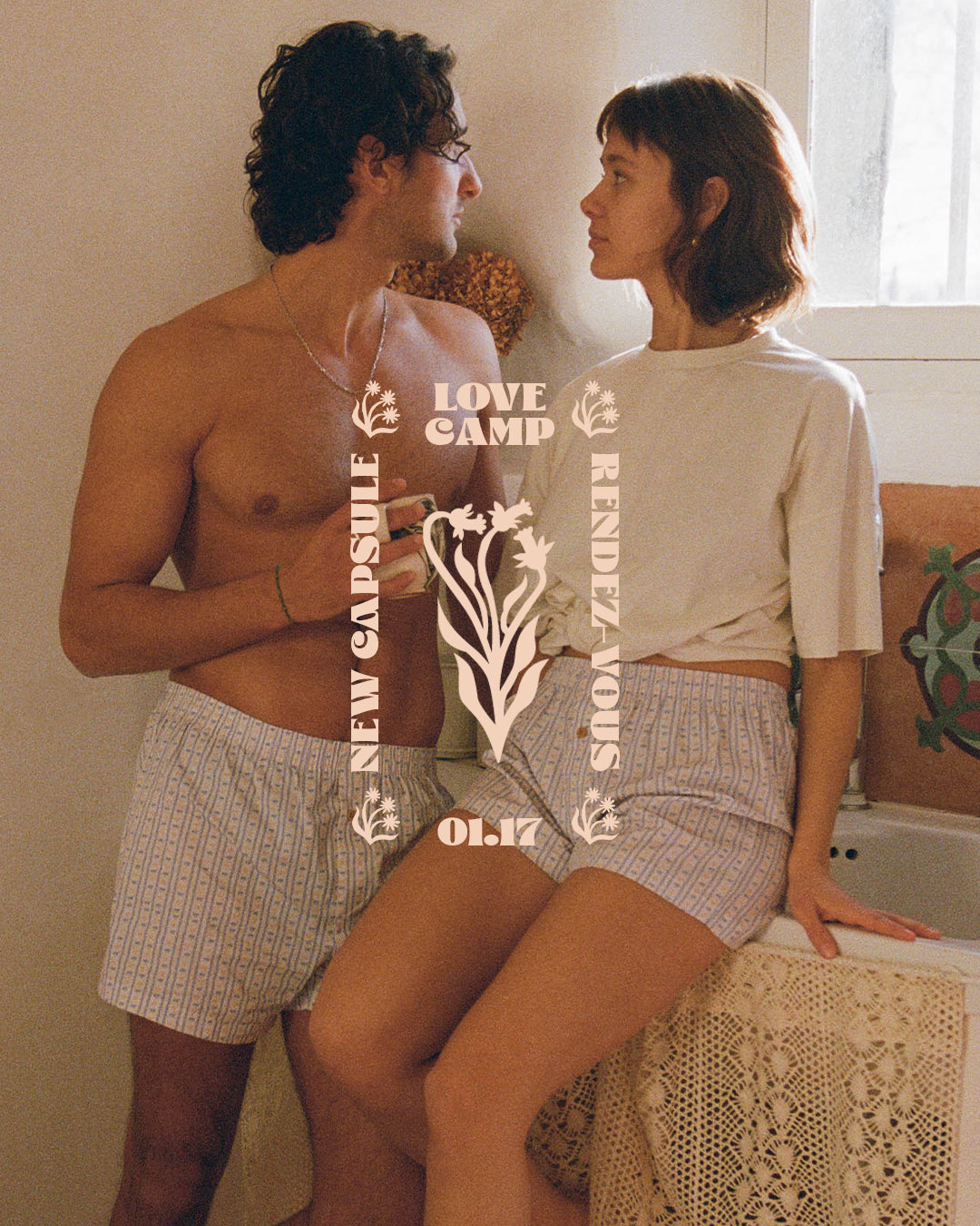 LOVE CAMP SPEAKS OF HOLIDAYS FOR TWO, OF CLOTHES WE SHARE, OF DEEP BREATHS, OF DREAMS IN UNISON.