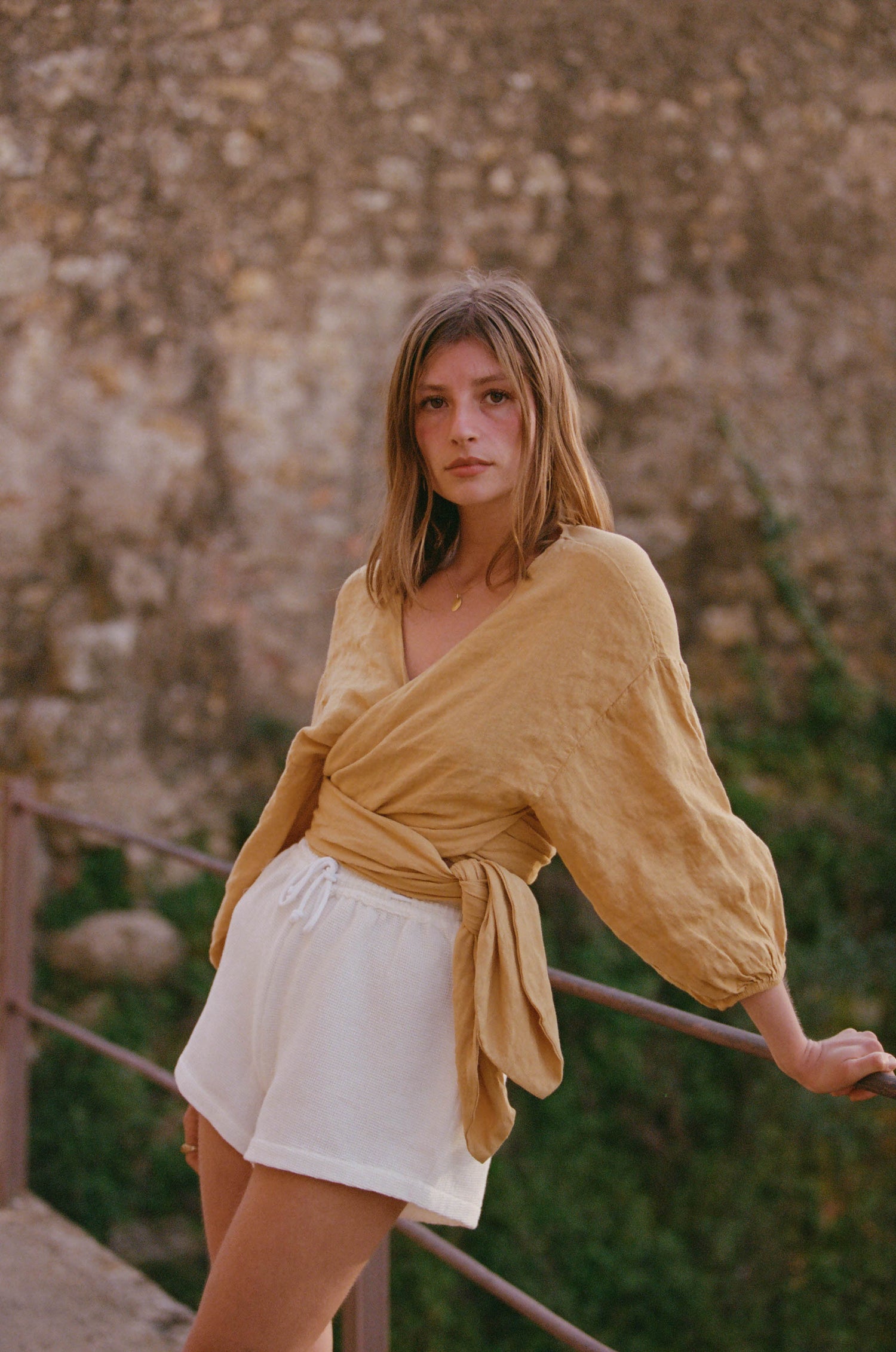 Matière éco-responsable par excellence, le lin est une matière naturelle et végétale particulièrement appréciée dans le milieu du textile. Et pour cause : hyper résistante, thermorégulatrice, locale, recyclable et très peu gourmande en eau, le lin a tout bon ! En plus, sa culture ne nécessite aucun pesticides et se satisfait de l’eau de pluie uniquement. Cerise sur le gâteau : le lin permet d’absorber chaque année près de 250 000 tonnes de CO₂ en France, premier pays producteur de lin au monde ! Chez Nénés, on adore l’utiliser pour notre loungewear et notre beachwear, notamment pour notre jupe Susan ou nos blouses Victoria.