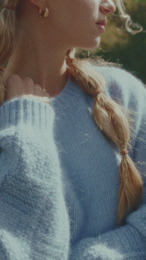Le pull Alison est confectionné dans un fil italien mixant laine, polyamide recyclé et alpaga. Ce modèle reprend la coupe du parfait sweat ample tout en se distinguant avec un jeu de points sur la manche. Nénés a apporté beaucoup d'attention au choix du fil afin qu'il soit le plus durable et doux possible. On adore sa couleur beige naturel parfaite pour illuminer votre vestiaire d'hiver. Ce pull est aussi disponible dans deux autres coloris : marron expresso et bleu glacier.