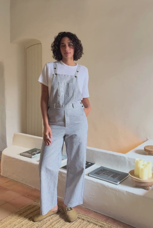 Violaine se porte légèrement ample pour apporter une touche de modernité à cette pièce. La hauteur totale se règle grâce à ses 3 petits boutons au niveau des bretelles, parfait pour s'adapter à un maximum de morphologies et d'envies ! Le bas du pantalon est évasé également.