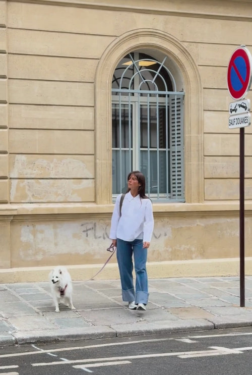 La blouse Solène se démarque par ses proportions audacieuses. Avec son col original et sa patte de boutonnage large, elle se démarque totalement des chemises blanches classiques.