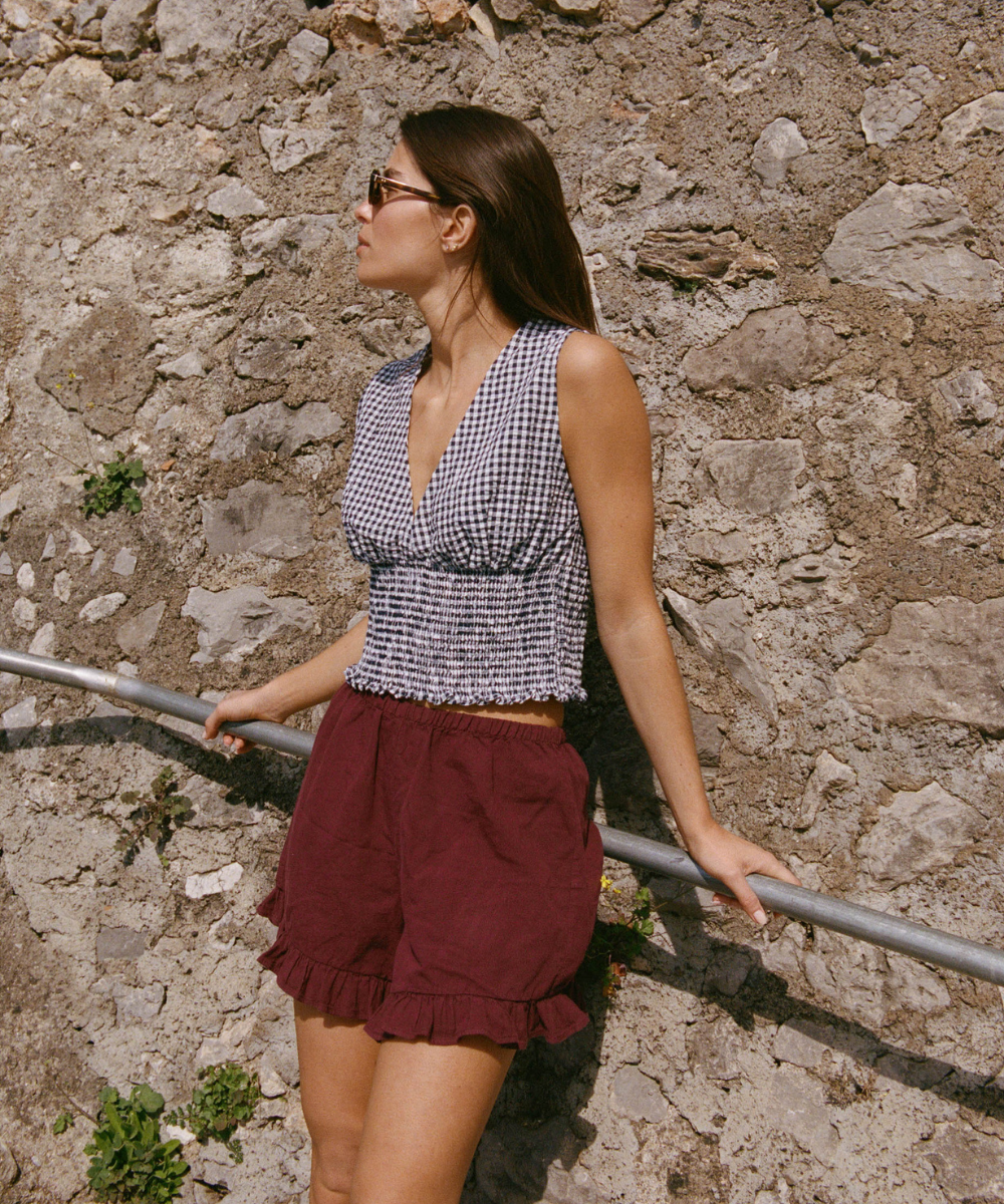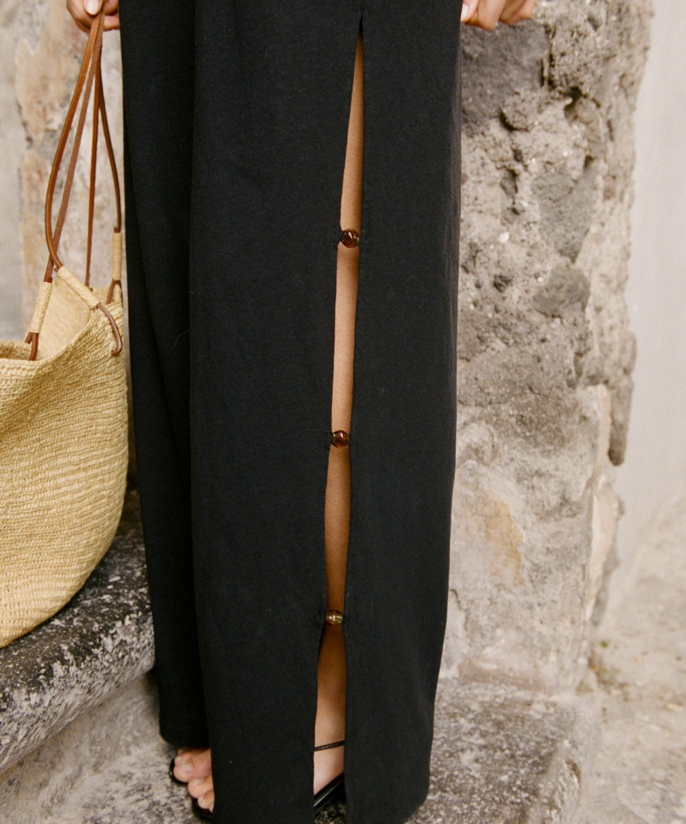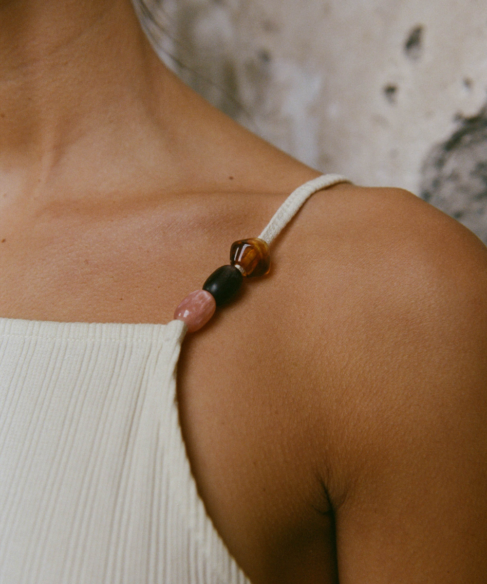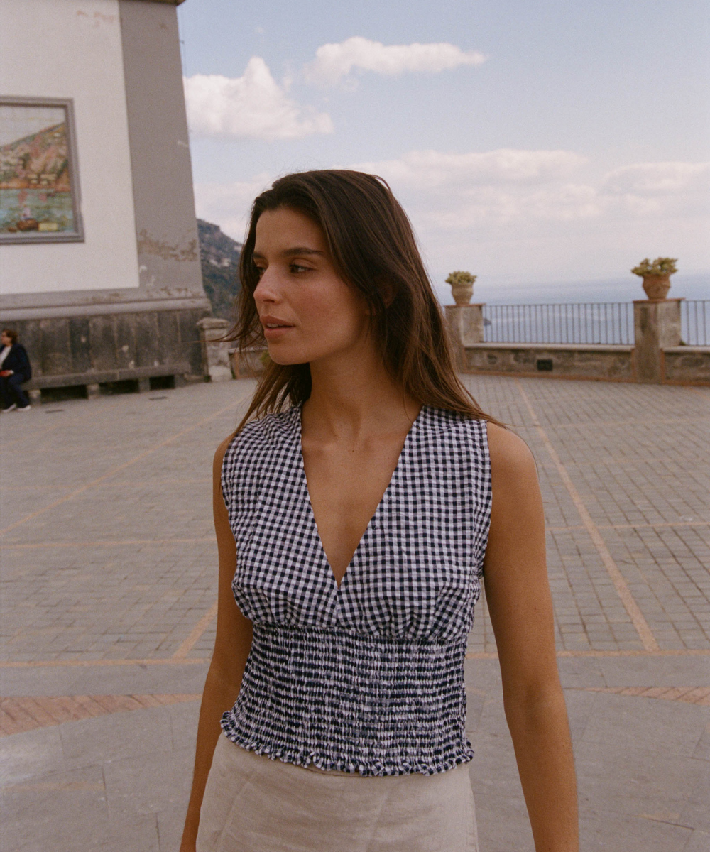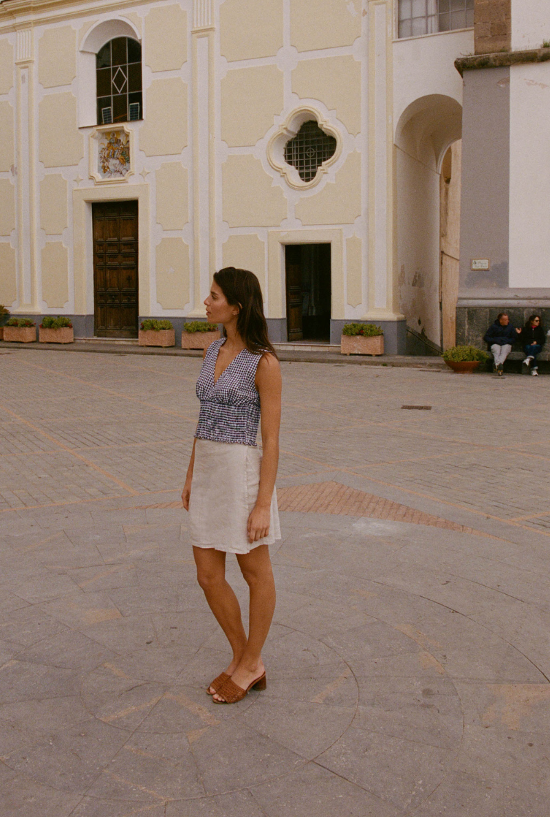 Robes fluides qui suivent les hanches, tops légers qui dévoilent un brin de peau dorée, pantalons subtilement découpés. chaque pièce est conçue pour être vécue, du matin au soir, entre criques, villages et maisons.