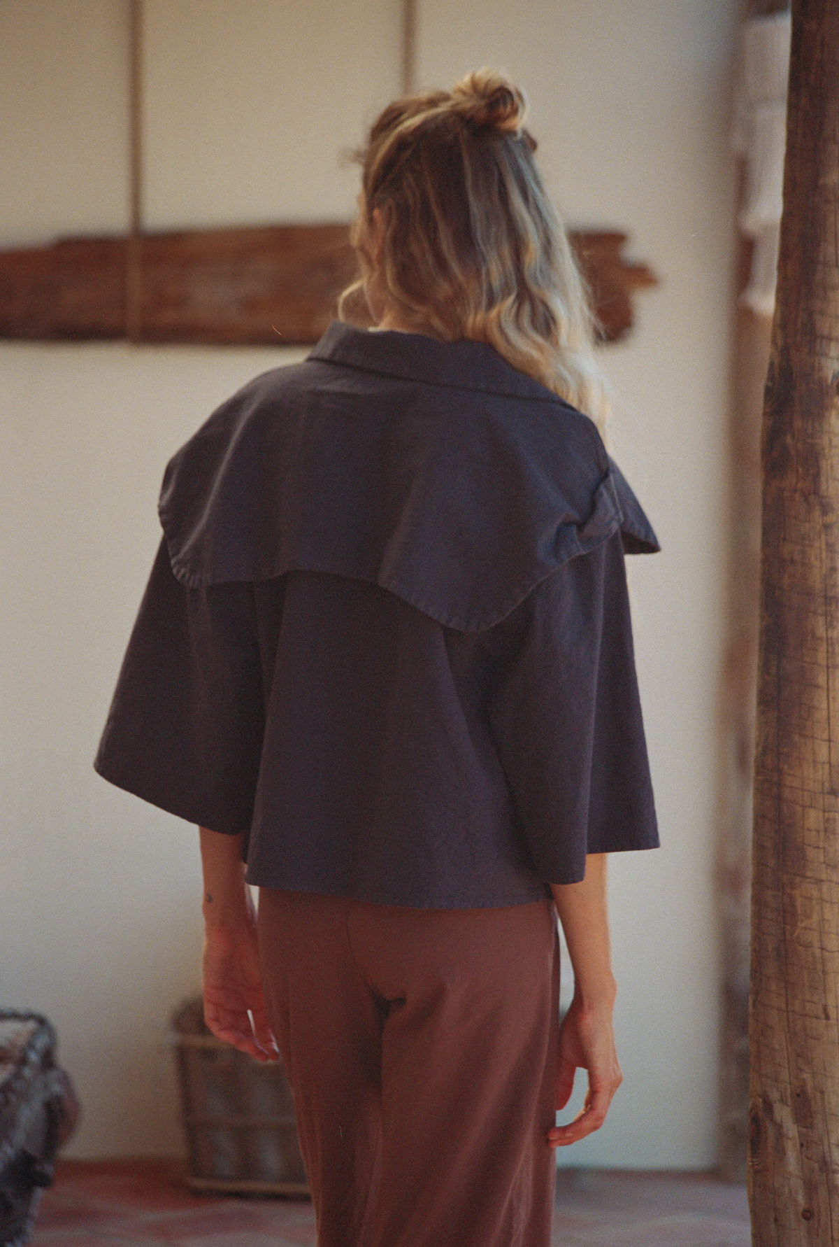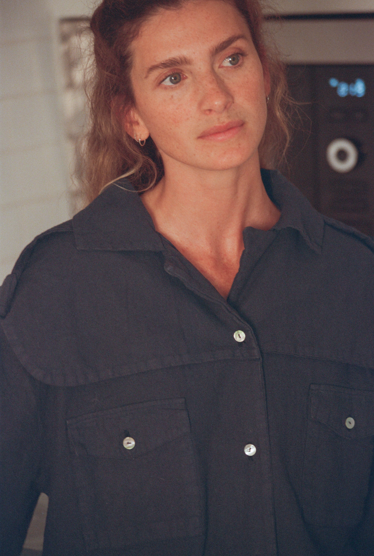 La chemise Céleste Bleu Marine est un haut à mi-chemin entre la blouse et la sur-chemise. Elle est composée de coton biologique et de lin. Très confortable, elle est idéale à porter avec un jean ou un pantalon.